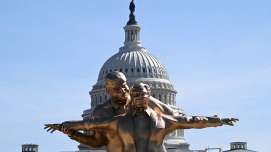 El "Rey del Mundo": instalan una estatua de Trump y Epstein como la pareja de Titanic en Washington